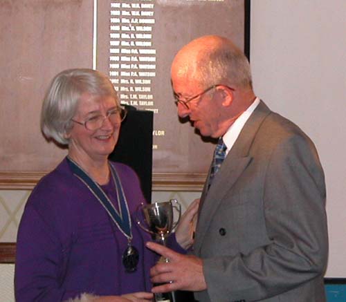 09. Linda Presenting Peter with One of his many Trophies