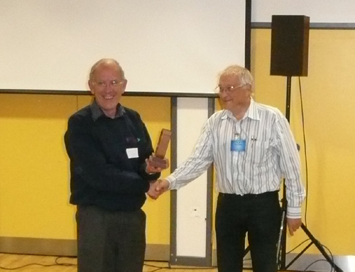 06/11/2013 Only 4 entries for the Currie Cup club competition. Neil and Brian were the Stan Olman gurus. After citique of the 4 films, they decided that Portals was worthy of a nomination and was also voted by members as the winner of The Curry Cup. Portals was made by new member Tomasz Franek, photographed here receiving his award. Summary stills are available. Several course members had their introduction films screened which were exceptional in the animation, special effects and quality, as well as being very entertaining. All course members who were present were handed certificates and photos were taken of individuals and the group. The evening finished with the screening of a Vimeo animation film GULP and the 'making of' which involved stop frame animation using cranes, mobile phone cameras and many people on a beach!