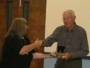09/10/2013 There were enough people in the audience for the use of the big hall for the Gateway competition with 14 visitors from Satines and Bourne End. The three films from each club were screened and Simon handled the scores from the judges and calculated the results shown below, with a win for Bourne End. Karen handed the trophy from the Surrey Border competition to Geoff and also mentioned the discount arrangement with Blades for purchases of RFVM clothing till the end November.